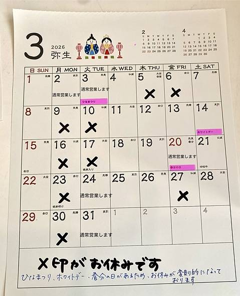 ★2025年 定休日カレンダー★