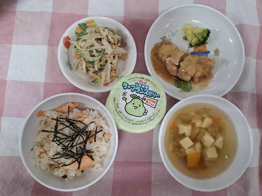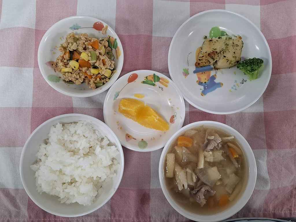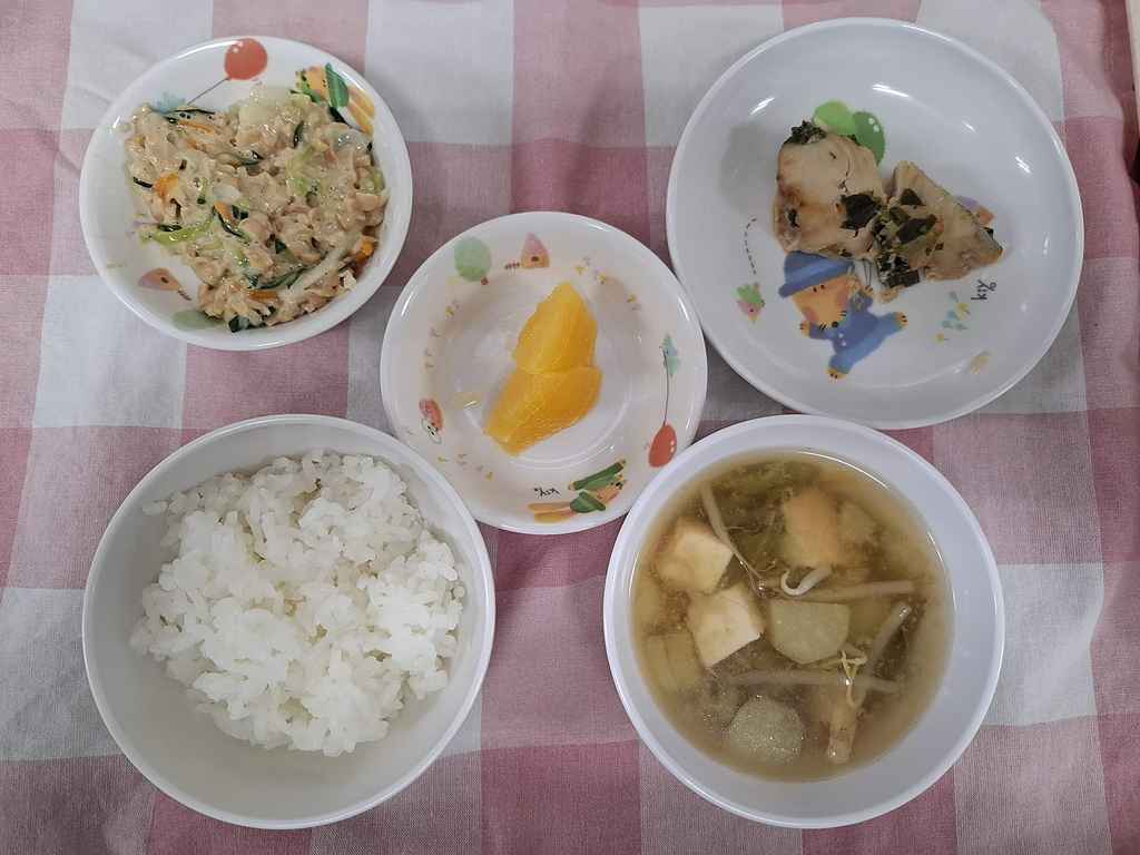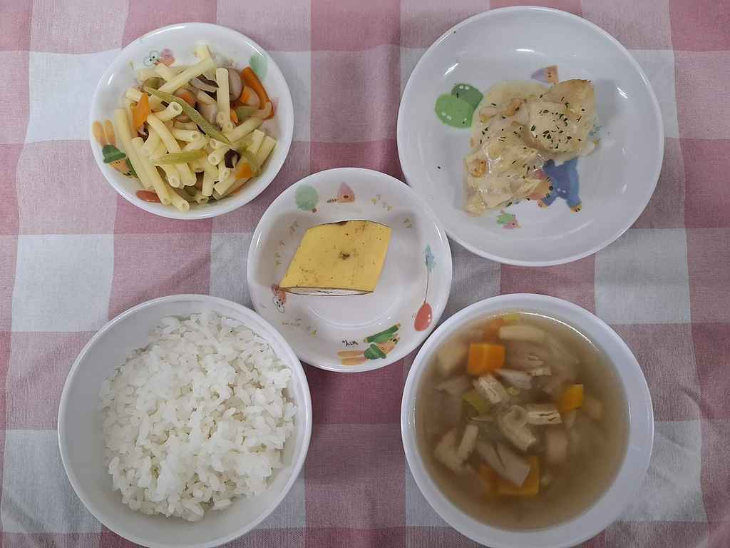 �本日の給食 11/7更新![]() 10/6 ごはん けんちん汁 うさぎハンバーグ キャベツとリンゴのサラダ お月見ゼリー ![]() 10/3 チキンカレーライス 野菜スープ ブロッコリーのごま和えサラダ バナナ ![]() 10/2 ごはん 沢煮椀 かれいの煮魚 さつま芋の甘煮 グレープフルーツ ![]() 10/1 五目ラーメン 焼きギョウザ 豆乳きな粉デザート ![]() 9/30 ハヤシライス ABCスープ ピーマンと野菜のごま和え バナナ ![]() 9/29 ごはん すまし汁 さわらのみそ照り焼き そぼろ納豆和え ももゼリー ![]() 9/26 秋いっぱいカレーライス 野菜スープ 青梗菜の昆布和え 豆乳デザート ![]() 9/25 ごはん 沢煮椀 鮭の塩麴焼き さつま芋の甘煮 オレンジ ![]() 9/24 照り焼きハンバーガー トマト入り野菜スープ サウピカンサラダ みかんゼリー ![]() 9/22 ごはん 豚汁 かれいの磯辺焼き カラフル納豆和え オレンジ ![]() 9/19 運動会ごほうびメニュー ナポリタンスパゲティ 野菜スープ 肉団子 フライドポテト 豆乳プリン ![]() 9/17 ごはん なすのみそ汁 メンチカツ 切干大根の煮物 バナナ ![]() 9/16 ごはん 麩のすまし汁 ハンバーグ ほうれん草の納豆和え ももゼリー ![]() 9/12 ごはん 五目汁 たらのコーンクリーム焼き マカロニ炒め バナナ ![]() 9/11 ごはん おくらのみそ汁 豆腐入り松風焼き じゃが芋のフライ オレンジ ![]() 9/10 鮭としめじの味付けごはん すまし汁 照り焼きチキン れんこんとごぼうのサラダ ラフランスゼリー ![]() 9/9 ごはん わかめスープ 厚揚げと豚肉の中華煮 大学芋 バナナ ![]() 9/8 ごはん なすのみそ汁 さわらの香味焼き 和風納豆サラダ オレンジ ![]() 9/5 ポークカレーライス ほうれん草のスープ キャベツナサラダ グレープゼリー ![]() 9/4 ごはん 切干大根のスープ かれいのパン粉焼き 南瓜のサラダ オレンジ |