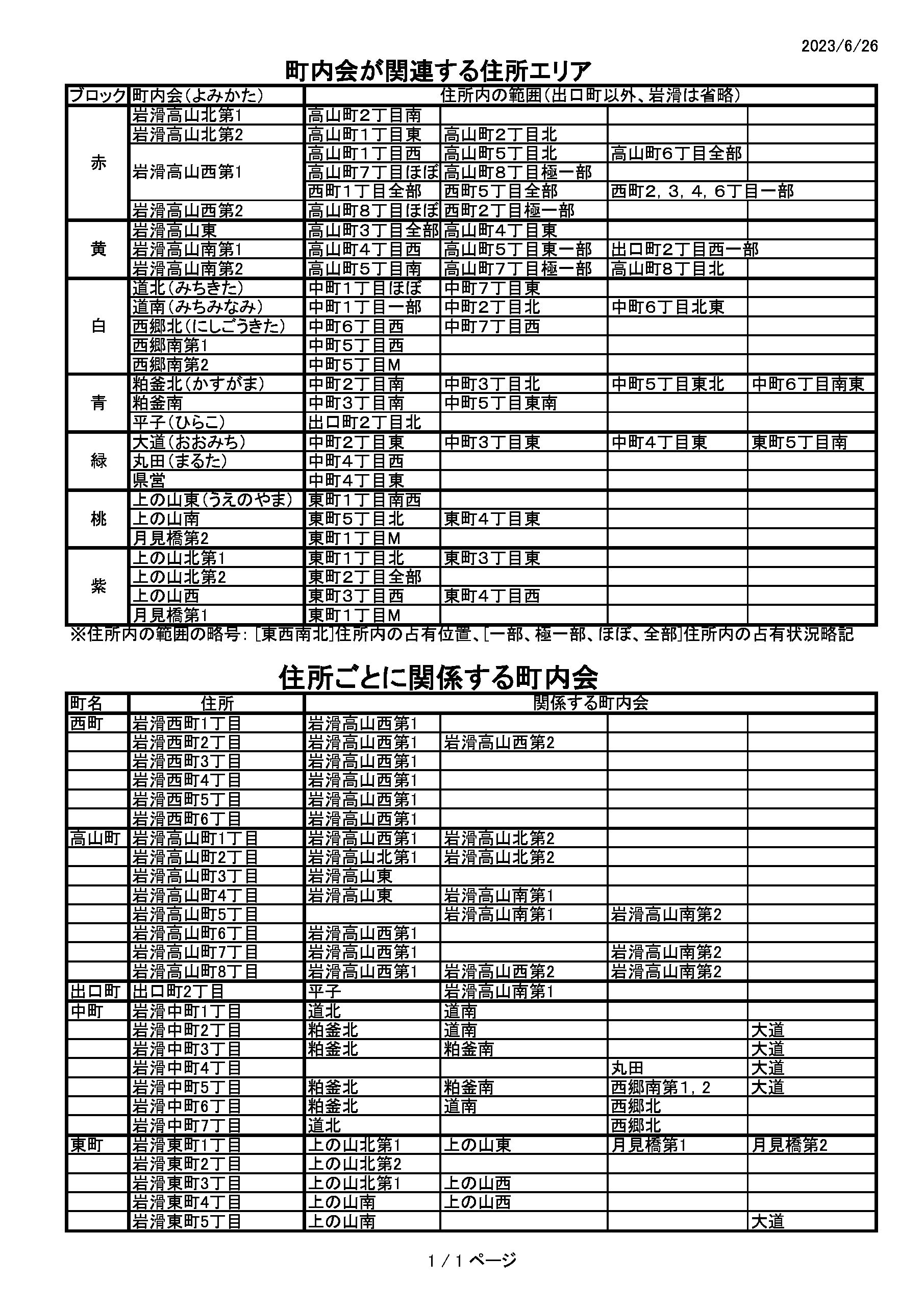 町内会の住所範囲文字表示、住所の町内会分布