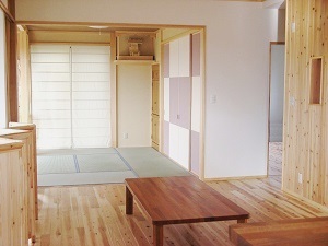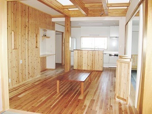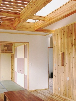 ― 杉の無垢材をふんだんに使った間仕切りのないオープンな家ー