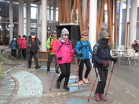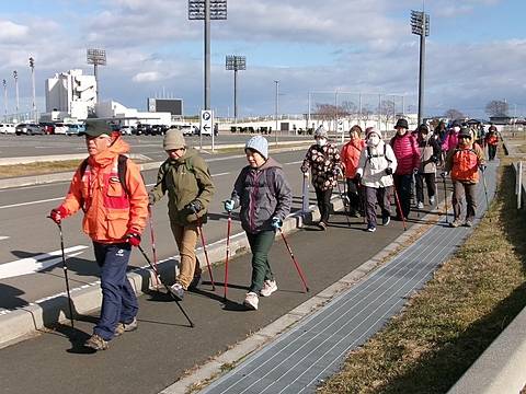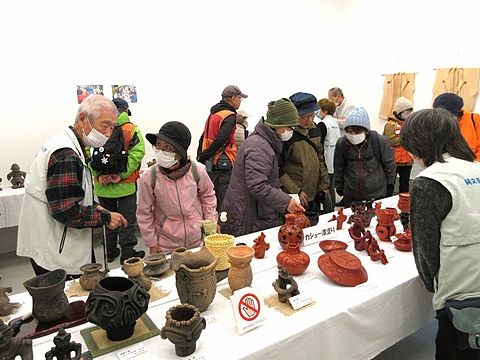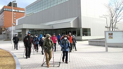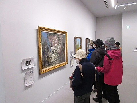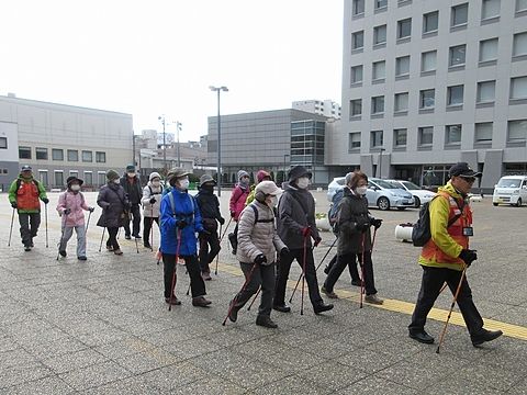 年末恒例「中心街・美術館めぐり」は寒さも収まりウォーキング日和となりました。準備体操の後、夜の賑わい鷹匠小路を通り抜け八戸市美術館へ、開催中の「縄文是川ボランティア作品展」には倶楽部メンバーの方4名が出展、そのリアルで精緻な出来栄えに会員一同驚き会場内を見て回りました。その後すっかり冬モードの三八城公園を経由して師走の市内中心街を巡り無事ゴールしました。