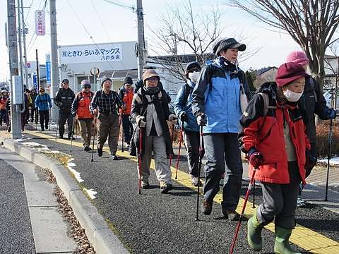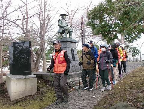 桜の名所めぐりにふさわしい、晴天に恵まれました。途中、中心街を通り「はっち」開催の油彩画展で目の保養をし、三八城公園や更上閣では色鮮やかな梅の花で再度目の保養ができました。桜はもう少し後の「お楽しみ」で、ウォーキング後は暖かい日差しの下、賑やかなお花見開催で盛り上がりました。