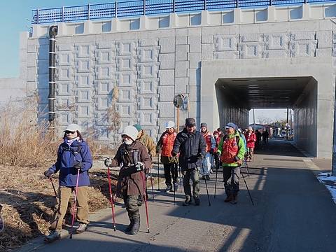 快晴の「いちょう公園」今年は春桜ウォークです。準備体操の後3チームに分かれて出発。カモたちが羽を休める根岸堤の遊歩道は木材チップを敷き詰めてフワフワです。半周して北エリアの池では大きな鯉が悠々と泳ぎ回っています。陽光台団地を経由してお目当ての自由の女神像まで来ると満開の桜、皆さんから歓声が上がりました。お天気に恵まれ大満足のウォーキングでした。