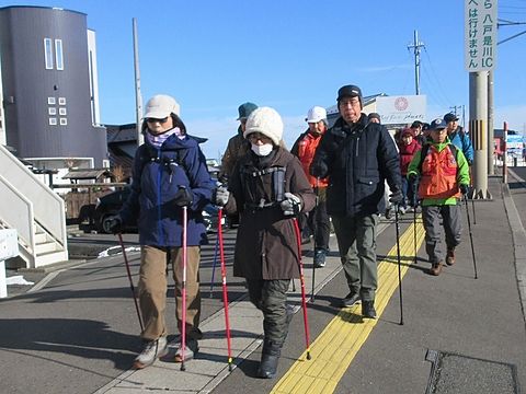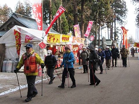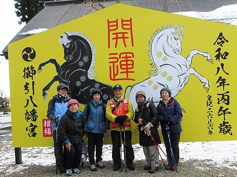 明けましておめでとうございます。本日は新年を迎えた「櫛引八幡宮」を目指します。準備体操で冷えた体をほぐし3チームに分かれて出発。晴天・積雪ゼロで足取りも軽く、年明けの街並みと会話を楽しみながら予定通り「櫛引八幡宮」に到着。今年は60年に一度の丙午、平日のため混雑することなく皆さんそれぞれの思いを込めて参拝。清々しい気持ちで新たなスタートを切ることができました。
